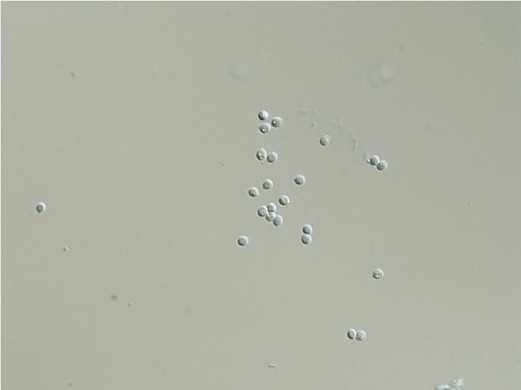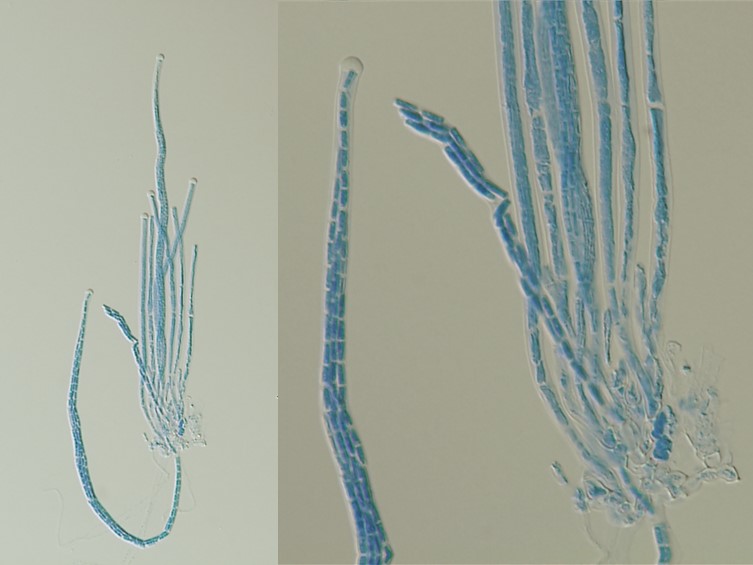 Ascospores hyaline, cylindrical, breaking into 32 small truncate part-spores, 4-7 × 1-2 μm. Asexual morph terminal, whitish to pale yellow, up to 10 mm long, 0.5-1 mm in width. Conidiogenous cells monophialidic, phialides flask-shaped with long necks, up to 30 μm long and 2-4 μm in width; phialide necks up to 18 μm long and 0.5 μm in width. Conidia hyaline, smooth, spherical, 2-3 μm.