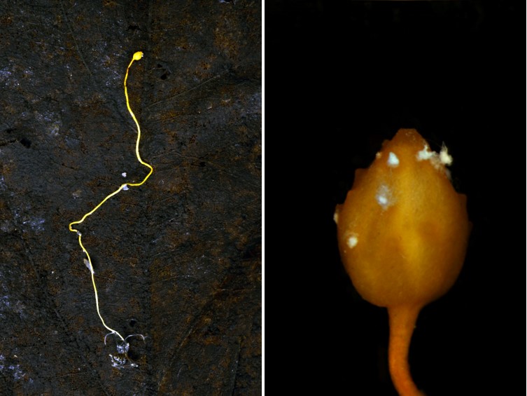 Stroma arising from between the head and pronotum of adult worker of Polyrhachis armata, simple, solitary, pale-yellow, yellow-orange to orange, 5-9.7 cm long. Fertile heads terminal, obpyriform, ovoid with yellow to yellow orange to orange, ostioles slightly protruding on the surface of the ascomata, 1-3 × 0.9-2 mm.