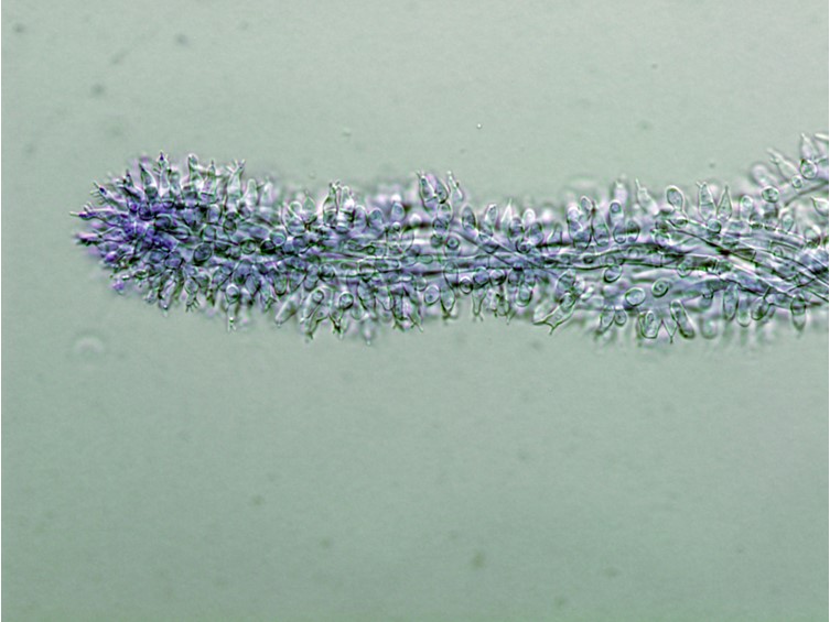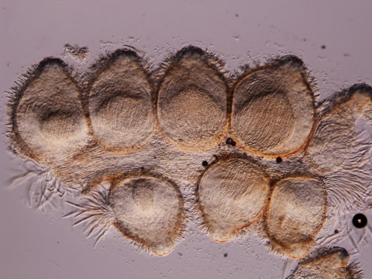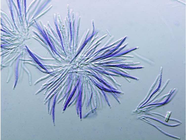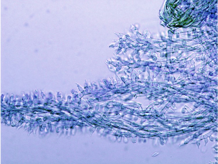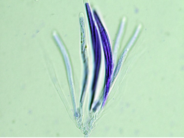 Asci cylindrical, 8-spored, up to 125 µm long, 10-15 µm wide. Ascus-cap rounded, 5 × 5 µm.