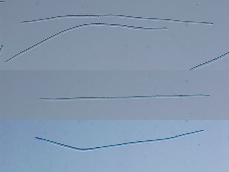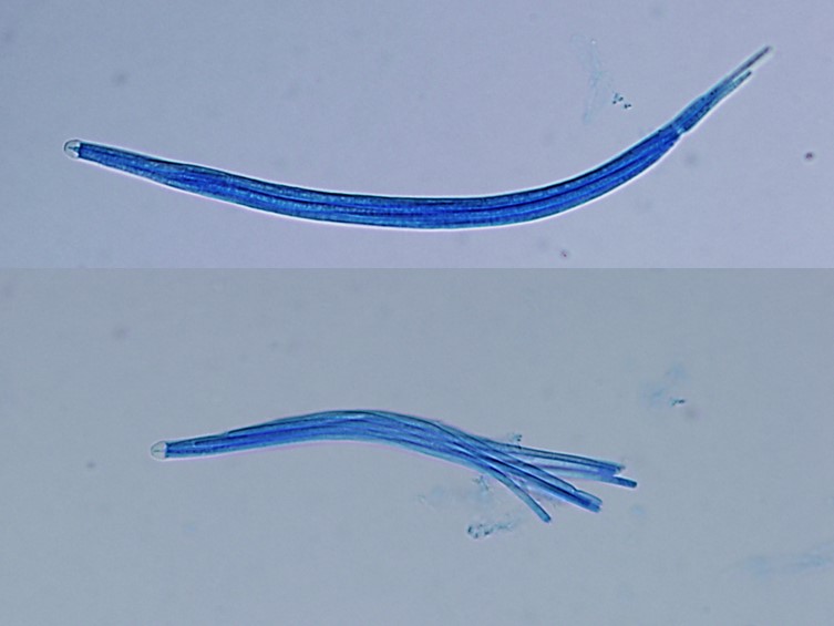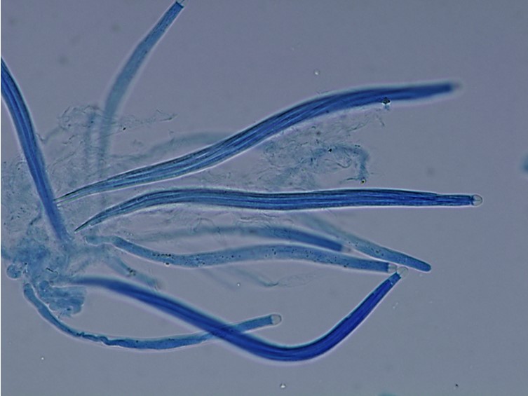 Ascospores 135-215 × 2-3 μm, filiform, remaining whole after discharge, no septation.