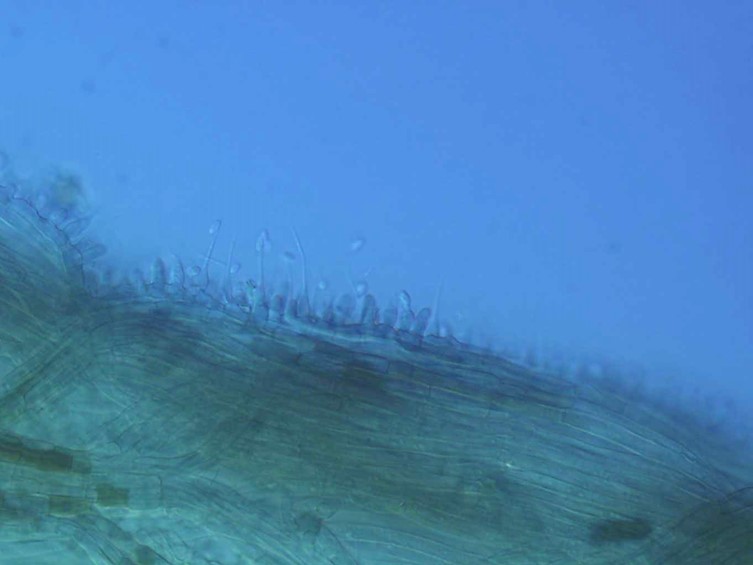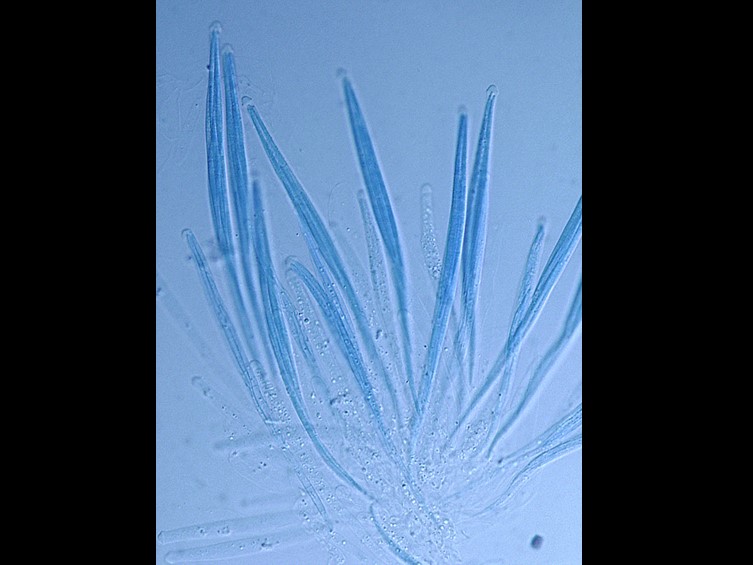 Phialides up to 30 μm long, 2–3 μm wide. Conidia hyaline, smooth, fusoid, 3–5 × 2–3 μm.