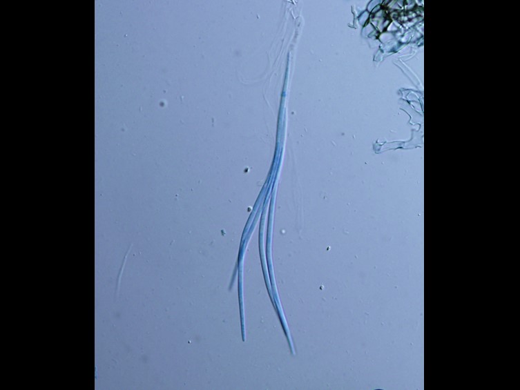 Ascospores lanceolate with tapering ends, 90–100 × 2–3 μm, multi-septate, remaining whole after discharge. Asexual morph: Hirsutella.