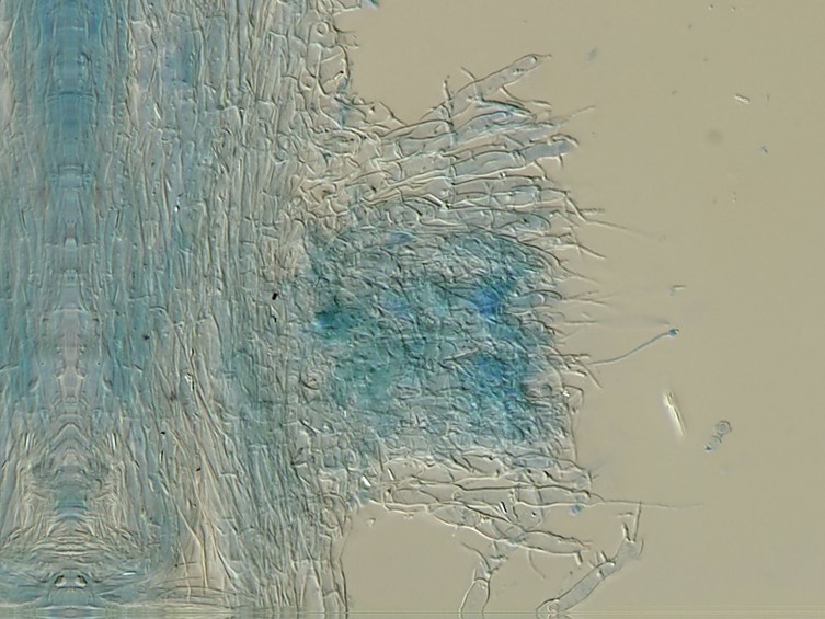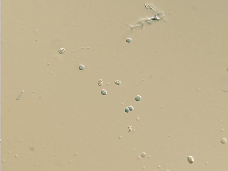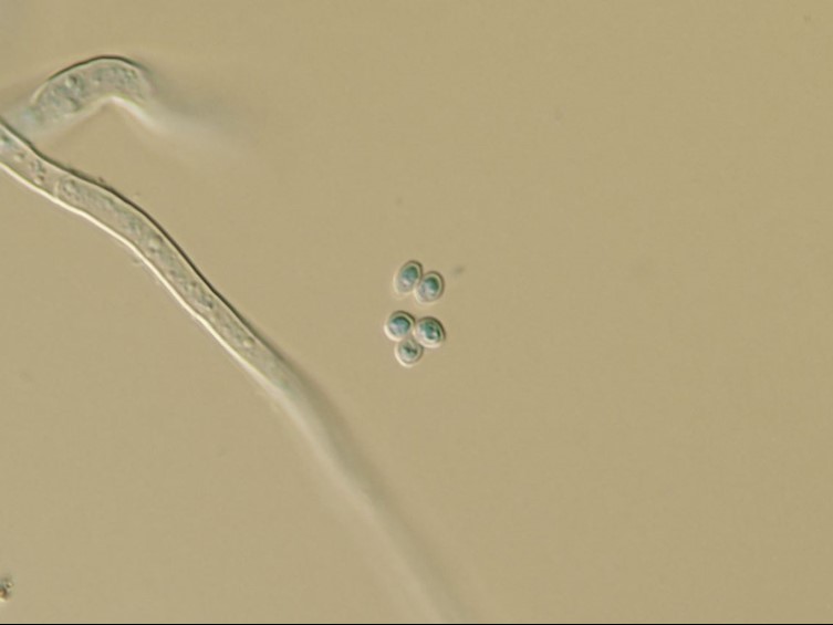 Asci cylindrical, 153–225 × 5–10 μm with asci caps, 1.5–2.5 × 3–4 μm.