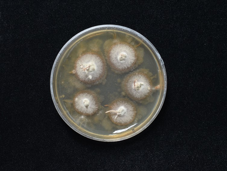 Colonies on PDA attaining a diam of 15–20 mm in 30 d, white, colonies reverse moderate reddish brown. Synnemata white to dark pink, in the middle of colonies.