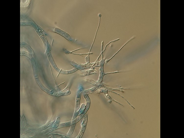 Conidiogenous cells monophialidic or polyphialidic, arising from either the lateral or terminal regions of the hyphae, cylindrical basal portion, 10–44 × 2–4 μm with a distinct, filiform, long neck up to 28 μm.