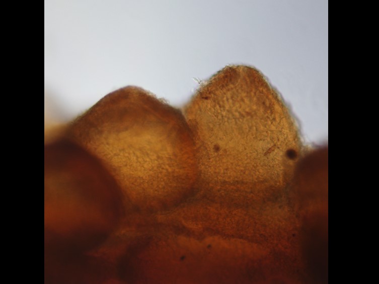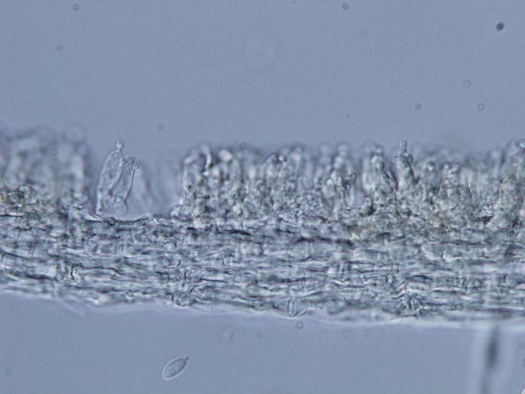 Conidiogenous cells formed a compact hymenium-like layer and had from two to four denticles at their apices, cylindrical to clavate, 10–17 × 3–6 μm.