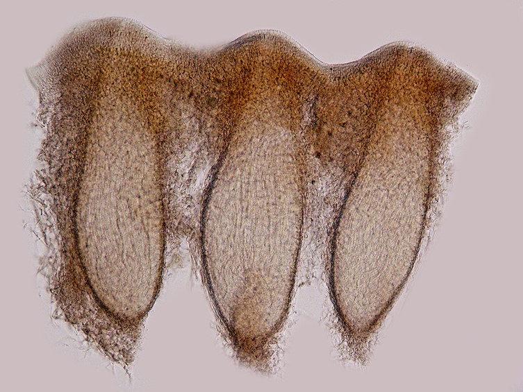 Asci hyaline, cylindrical, eight-spored, up to 400 μm long, 5 μm wide.