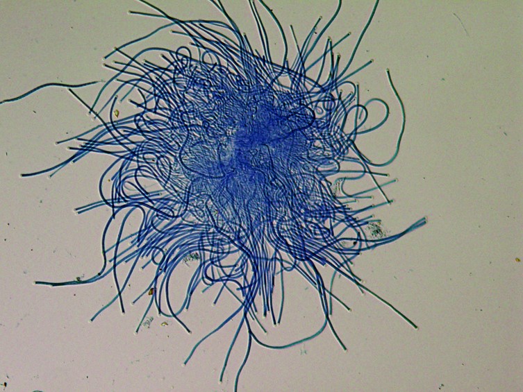 Ascospores hyaline, filiform, multi-septate, breaking into 64 cylindrical part-spores, 5-10 × 1-1.5 μm.