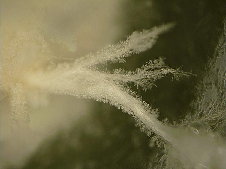 Colony on PDA in 30 d at 25°C approximately 2 cm in diam, white, velvety with irregular edges, colonies reverse uncolored. Mycelium smooth-walled, septate, hyaline. Conidiogenous cells phialidic, swollen at the base or slightly flask-shaped, in whorls of 2–3, 7–20 × 2–3 μm, with distinct phialide necks, 2–8 × 1 μm. Conidia hyaline, smooth, aseptate, distinctly of two types, mostly cylindrical, 5–7 × 1–1.5 μm, fusiform, 3–5 × 1 μm, mostly aggregated in slimy heads at the apex of three phialides. Sparse synnemata with conidiogenous cells producing conidia observed after 45 days, white, on the center of colonies.