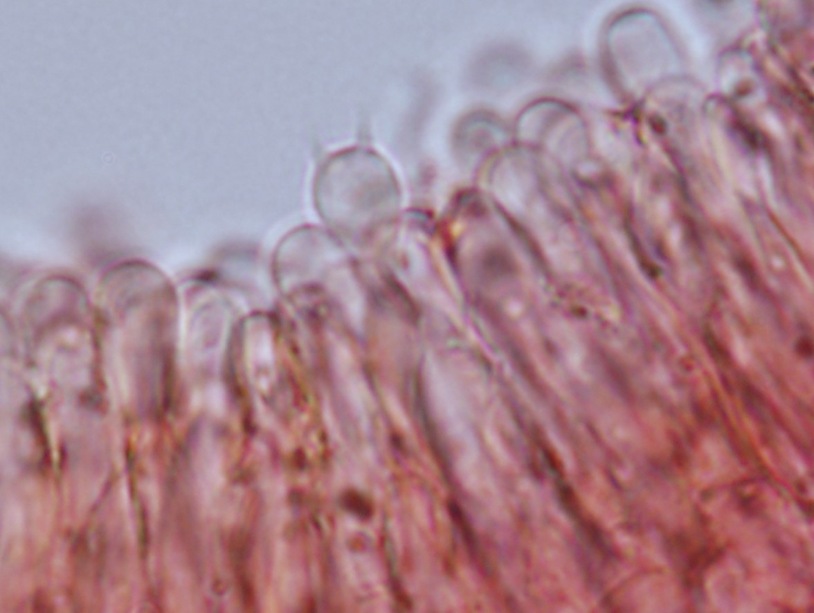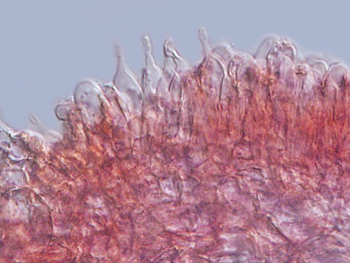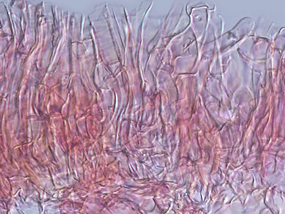 Pleurocystidia 25–37.5 x 5.5–7.5 µm, clavate, hyaline, thin-walled. Peilipellis 5–12 µm width, hyaline, thin-walled, branch, clamp connection absents.