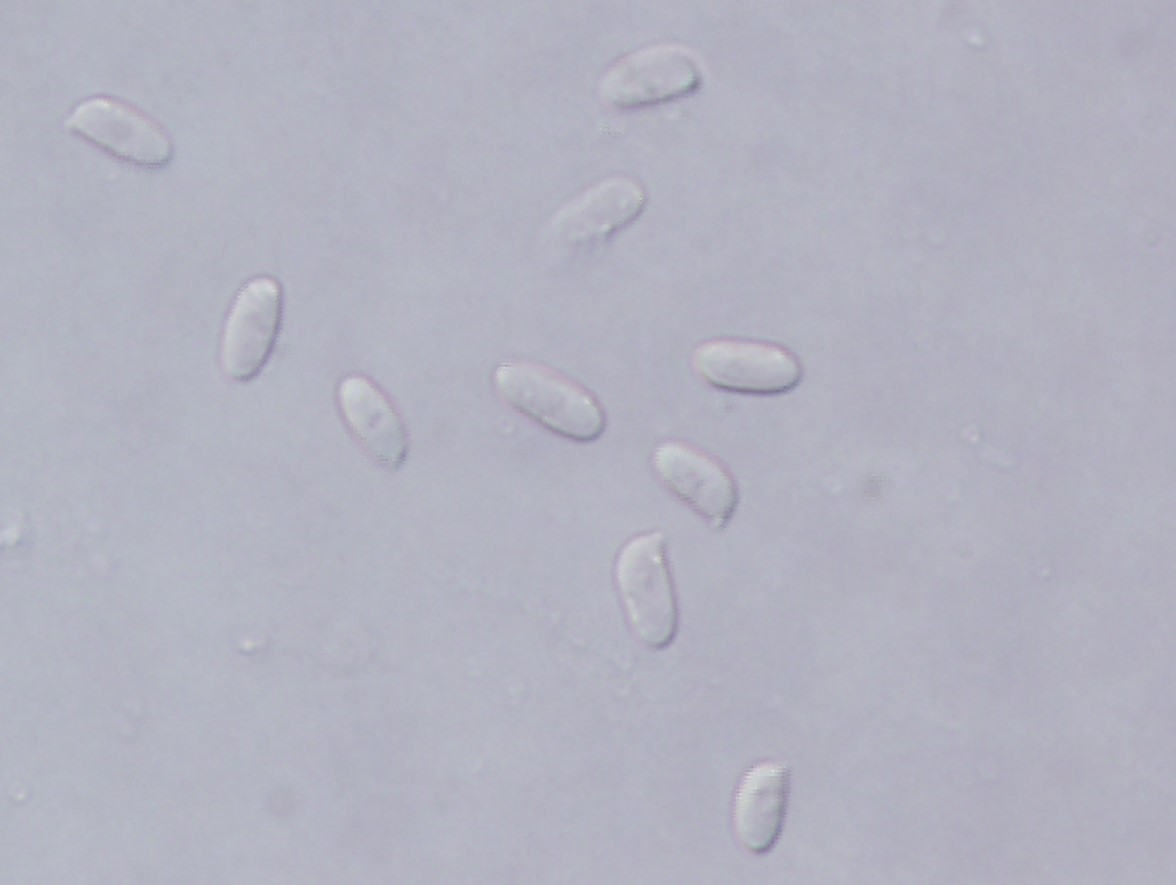 Basidiospores 7.5–8 x 3–4.5 µm, hyaline, thin-walled, smooth, ovoid to subcylindrical, inamyloid.