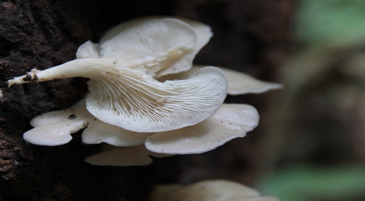 Basidiocarp 20–50 mm wide, fan or oyster-shaped, color white to cream, the margin is inrolled when young, and is smooth and often somewhat lobed or wavy. The flesh is white, firm, and varies in thickness due to stipe arrangement. The gills of the mushroom are white to cream, and descend on the stalk if present. If so, the stipe is off-center with a lateral attachment to wood. The spore print of the mushroom is white to lilac-gray, and best viewed on dark background. The mushroom's stipe is often absent. When present, it is short and thick.