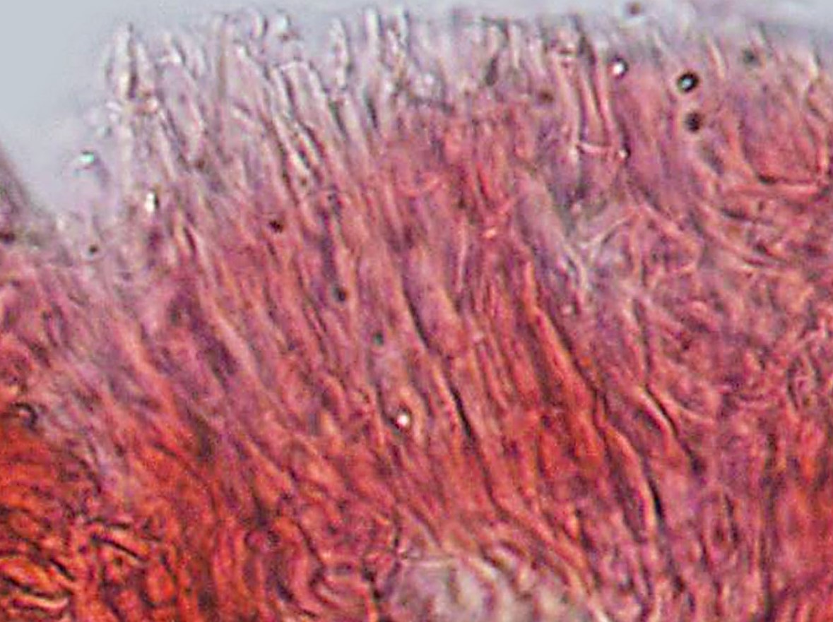 Basidia 18–25 x 3.7–5.5 µm, 4 sterigmata, hyaline, thick-walled, cylindrical to clavate shaped. Peilipellis 5–8 µm wide, branch, thick-walled, hyaline, clamp connection absents.