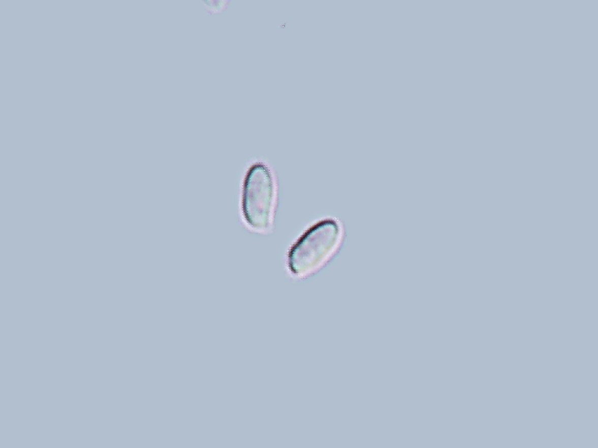 Basidiospores 7.5–10 x 3–4.5 µm, ellipsoid or ovoid to obovoid, hyaline, thin-walled, smooth.