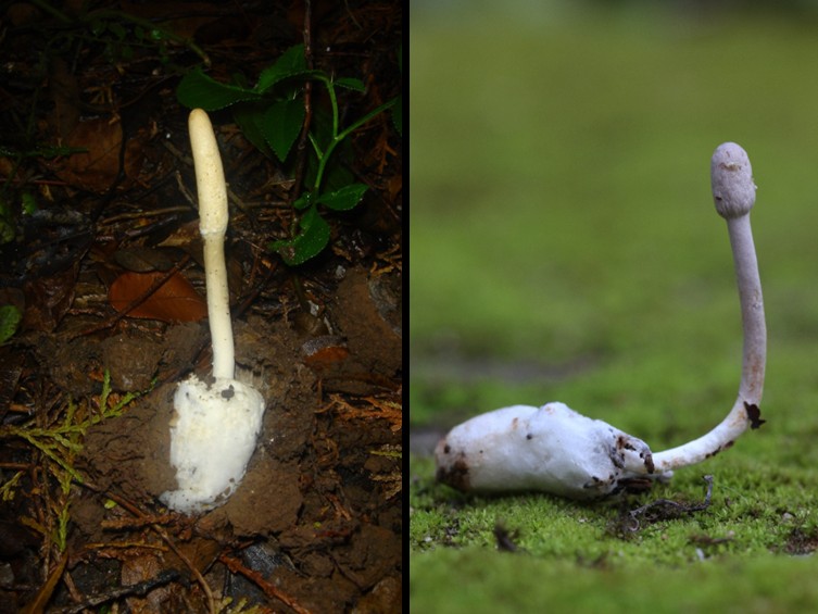 Stroma arising from head of host, 50–2 mm, composed of a simple stipe and clavate fertile part, cream white. Mycelia covering the whole body of host.