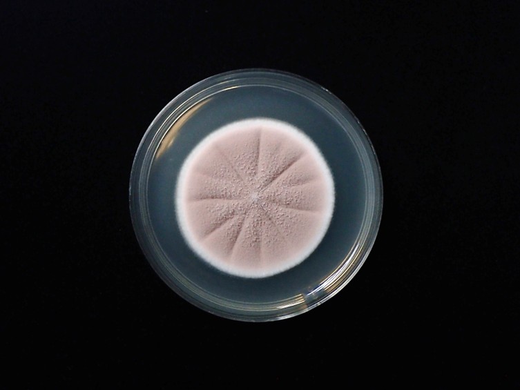 PDA attaining a diam of 30–40 mm in 14 d, purplish grey, cottony with high mycelial density, margins regular, radially sulcate, numerous