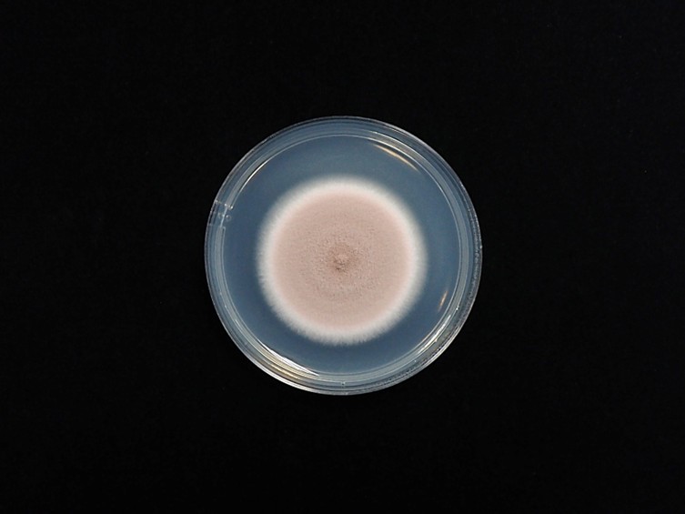 PDA attaining a diam 20 in 10 d, floccose, at first white but turning pink or pinkish purple due to the colour of