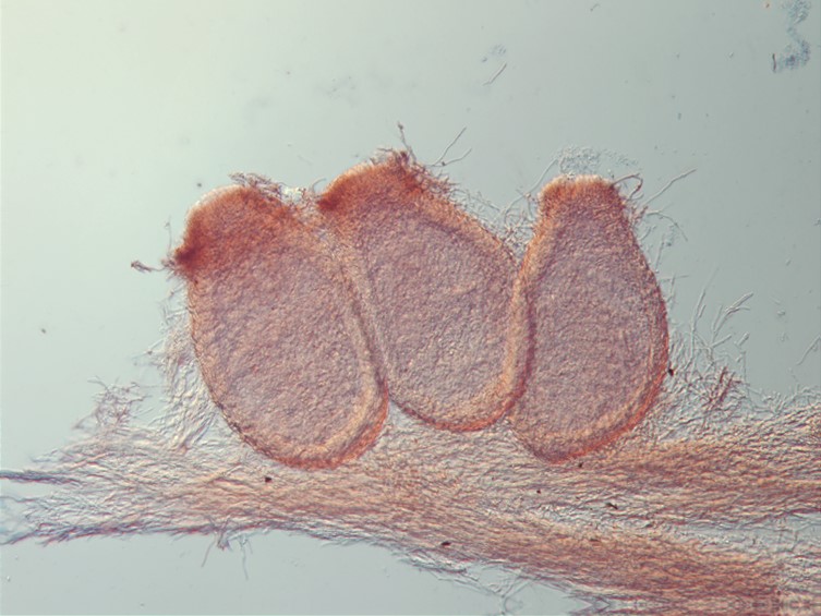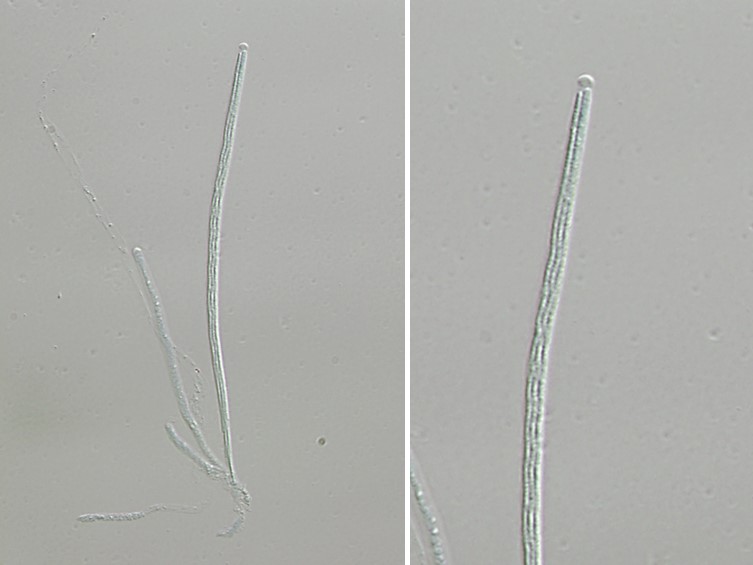 Ascospores smooth-walled, hyaline, filiform, 125-190 × 1 μm, whole, multi-septate. Asexual morph not seen in nature.