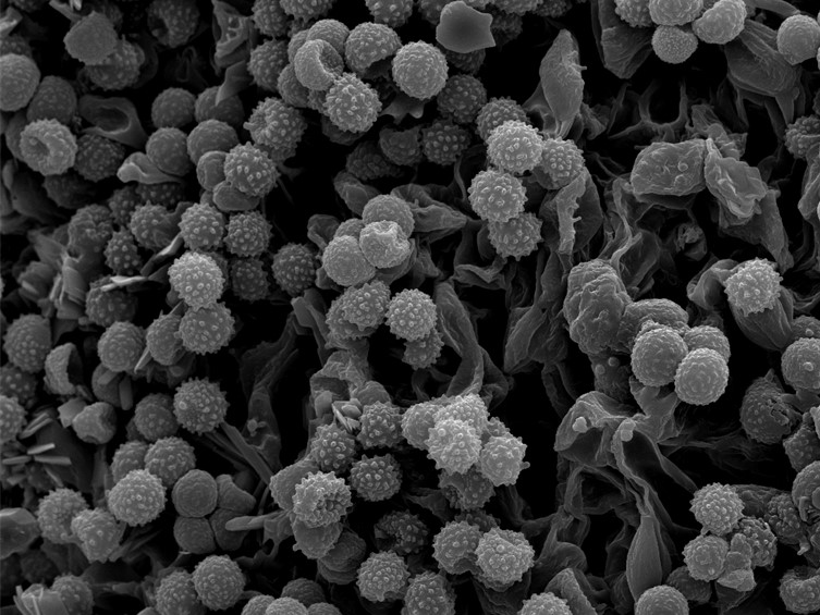 Basidiospores 6.1-9.3 × 6-8 μm, Q = 0.89-1.59, globose to subglobose or broadly ellipsoid, ornamentation amyloid, minute warts to bluntly conical to subcylindrical, not exceeding 1.0-2.0 μm in height; suprahilar plage indistinct, hilar appendix distinct, 1.0-1.5 μm in height, not amyloid; hyaline in 10% KOH.