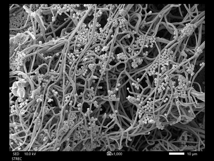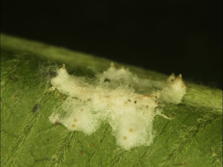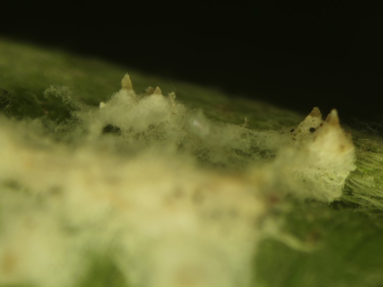 Perithecia superficial, almost covered with cottony white hyphal tissue, ovoid, 410–480 × 270–300 μm.
