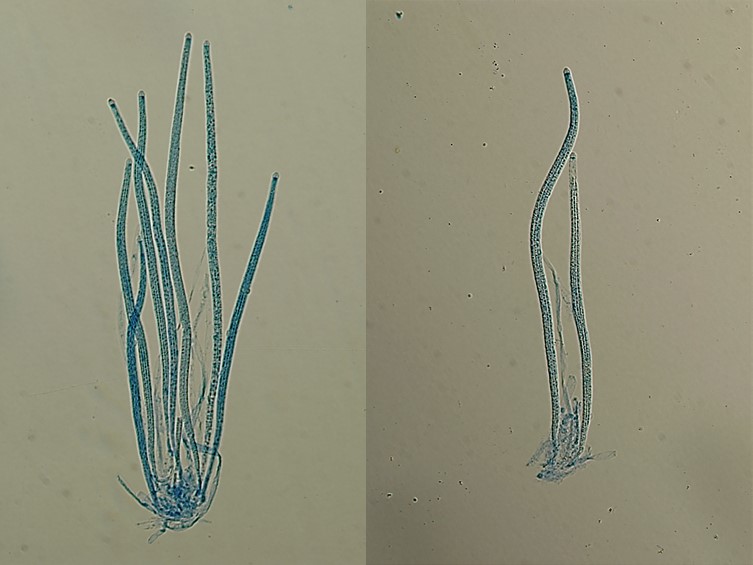 Ascospores hyaline, filiform, 310-395 × 1.5-2 μm, breaking into 64 cylindrical part-spores, 2-5 × 1.5-2 μm.