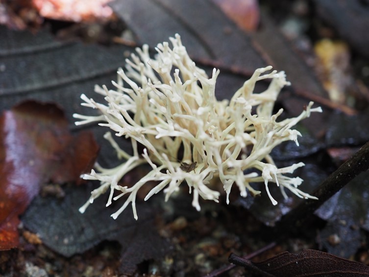 Basidiomata coralloid, 40–60 mm high × 62–130 mm broad, solitary to scattered, densely branched, white when fresh, pale yellow when dried. Branches flattened, dichotomous, primary lower branches 2.0–3.0 mm wide, white, tertiary and terminal branches 1.0–2.0 mm wide, white, axils V-shaped, apex flattened, furcate tip, fresh tough and elastic. Stipe 22–35 × 3–5 mm, flattened, white. Context white, slightly coriaceous, dry, tough at the base of the stipe. All tissue unchanging where cut or bruised. Odor not distinctive.